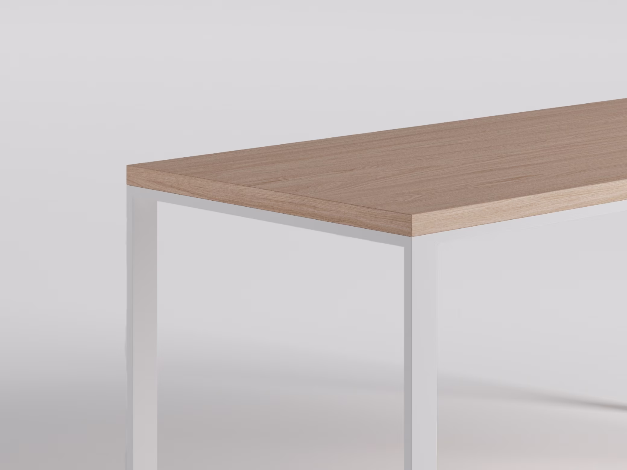 Materiał blatu: Naturalny obłóg dębowy (1.5mm) na rdzeniu z płyty drewnopochodnej, zapewniającej stabilność wymiarową.
