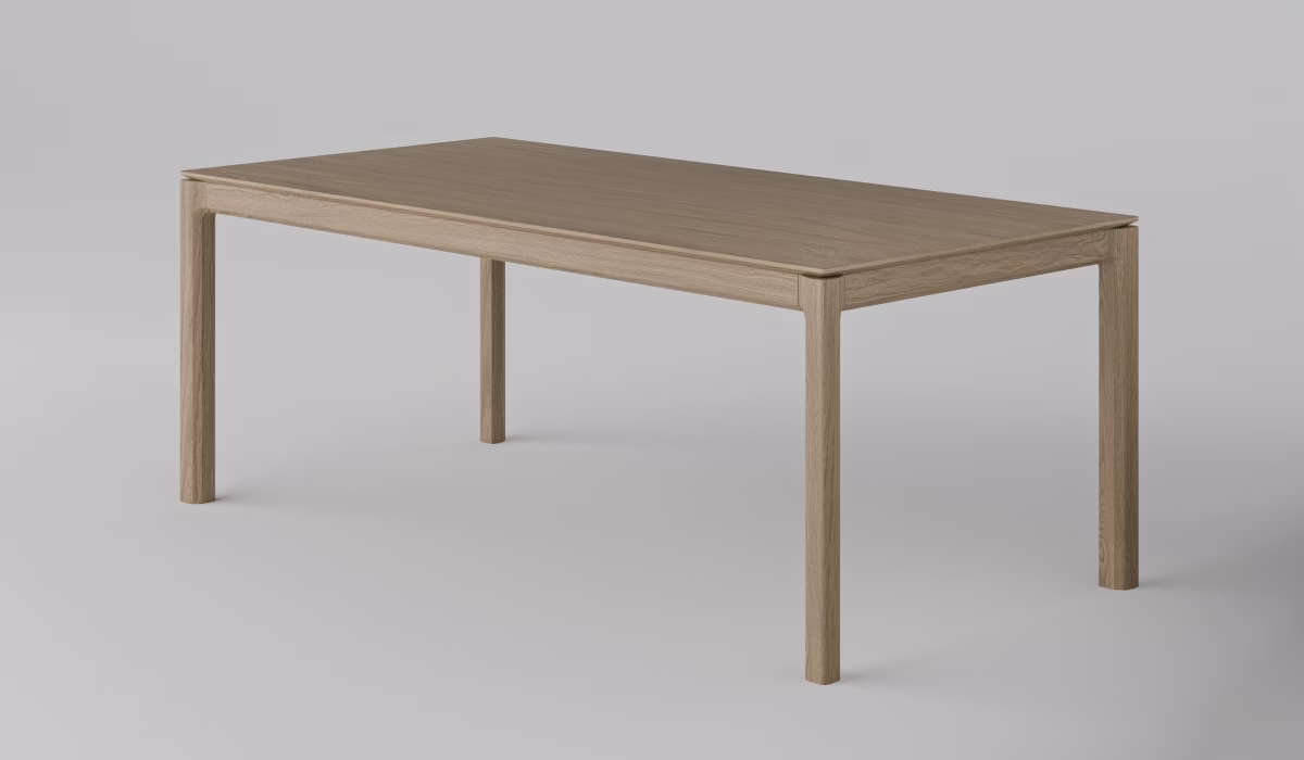 Materiał blatu: Naturalny obłóg dębowy (1.5mm) na rdzeniu z płyty drewnopochodnej, zapewniającej stabilność wymiarową.