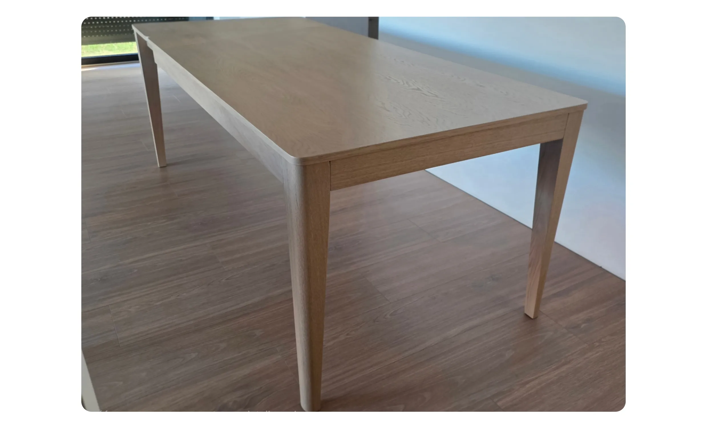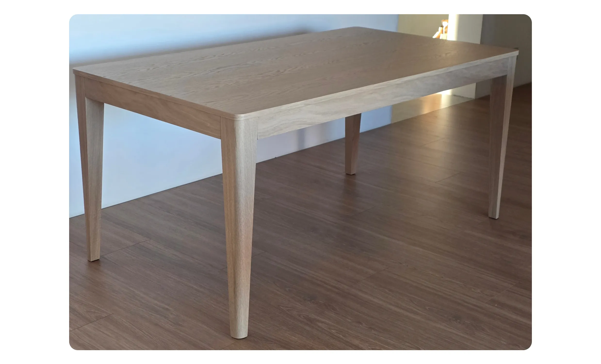 Materiał blatu: Naturalny obłóg dębowy (1.5mm) na rdzeniu z płyty drewnopochodnej, zapewniającej stabilność wymiarową.