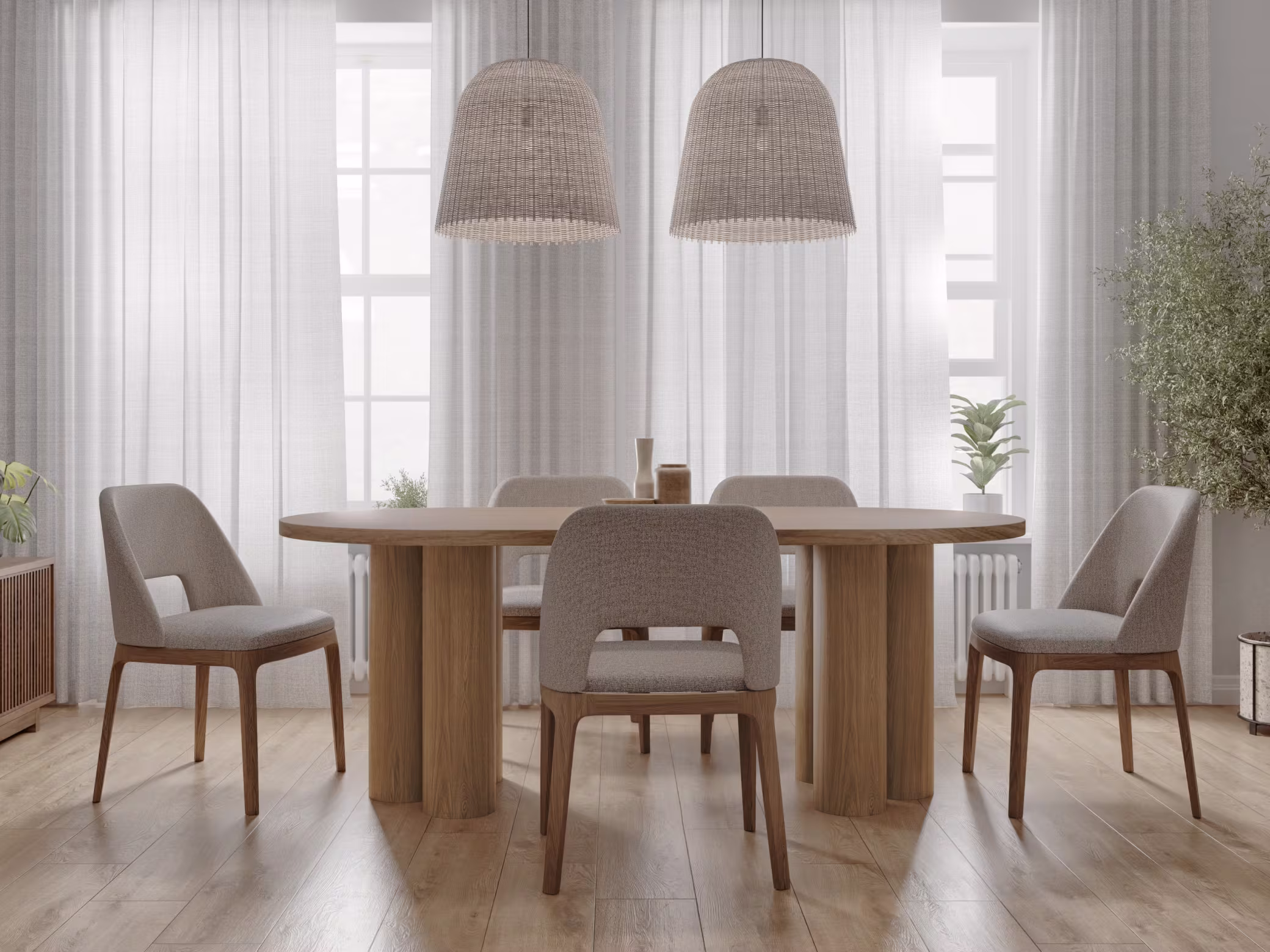 Materiał blatu: Naturalny obłóg dębowy (1.5mm) na rdzeniu z płyty drewnopochodnej, zapewniającej stabilność wymiarową.