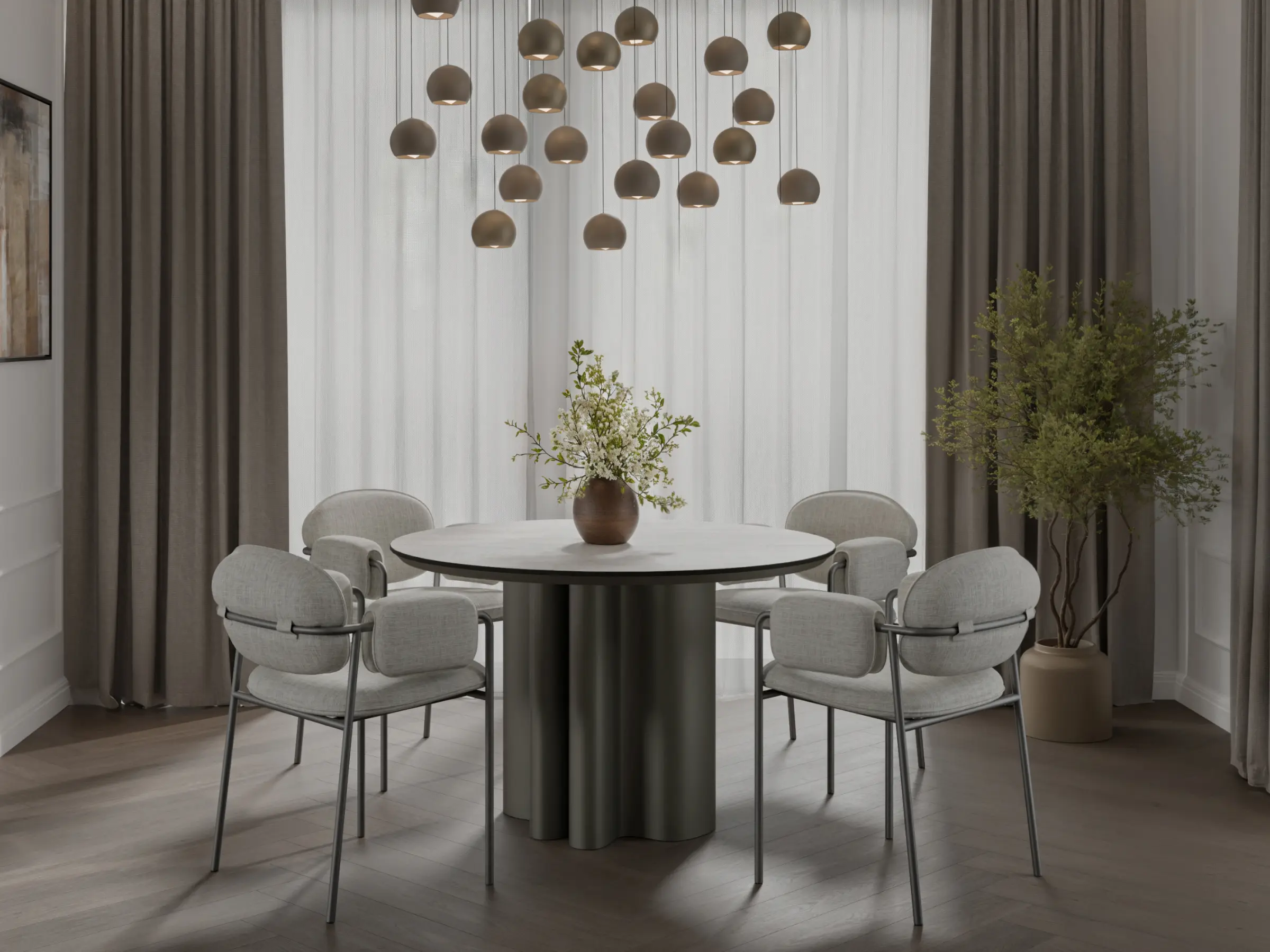 Materiał blatu: Spiek kwarcowy Tri-D Paradyż (12mm) na płycie MDF malowanej w kolorze podstawy, zapewniającej stabilność i spójność wykończenia.
